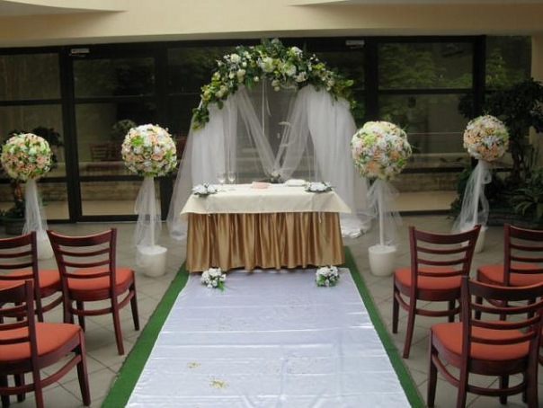 Кстати, оформление цветами и другими украшениями места проведения торжеств также входит в перечень наших услуг. Декораторы быстро и качественно справятся с любой возложенной на них задачей. С нашей помощью украшение свадебного зала перестанет быть для вас причиной для беспокойства и позволит в полной мере насладиться праздником.